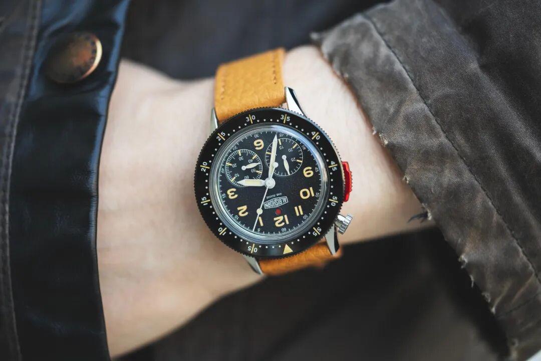 就好比,他们不久前推出的Albishorn Type 10 计时码表新作,就是一款用现代人的思维去假象1940年代的“虚拟复古”腕表。Type 10 计时码表的设计初衷来自于传奇的Type 20 军用飞行员计时码表的假想前身。