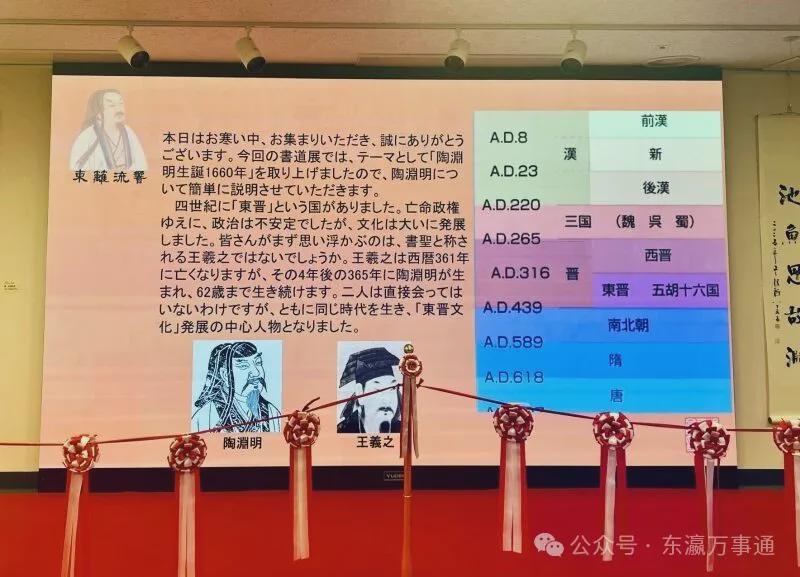 翰墨书道会副会长藤村远山先生介绍了陶渊明生平及本次会展的宗旨。
