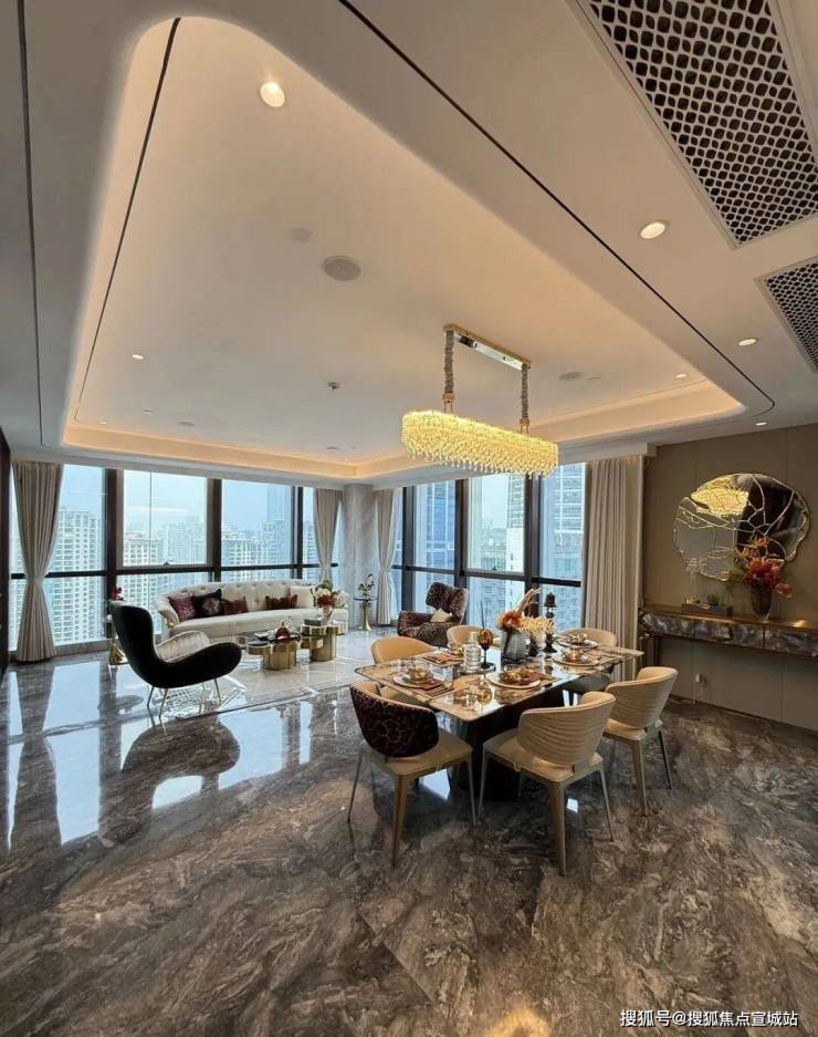 建筑设计:采用 Art Deco 风格设计,外立面选用卢浮宫同款石材搭配全景落地窗,质感厚重且通透;12 米挑高精装大堂,地面铺装意大利卡拉卡塔金大理石,尽显奢华气派;层高约 3.6 米,空间开阔舒适。