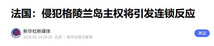 新华社新媒体 2026-01-14 法国:侵犯格陵兰岛主权将引发连锁反应
