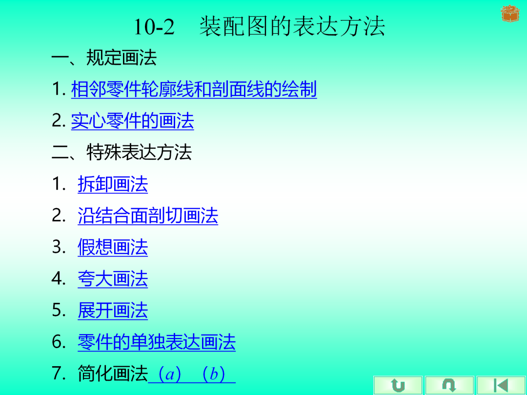 首先,需深入分析装配体,明确其功能、工作原理及各零件的相互作用。其次,拟定表达方案:选择主视图,通常按工作位置放置,并能最清晰地反映主要装配干线及工作原理,多采用剖视;