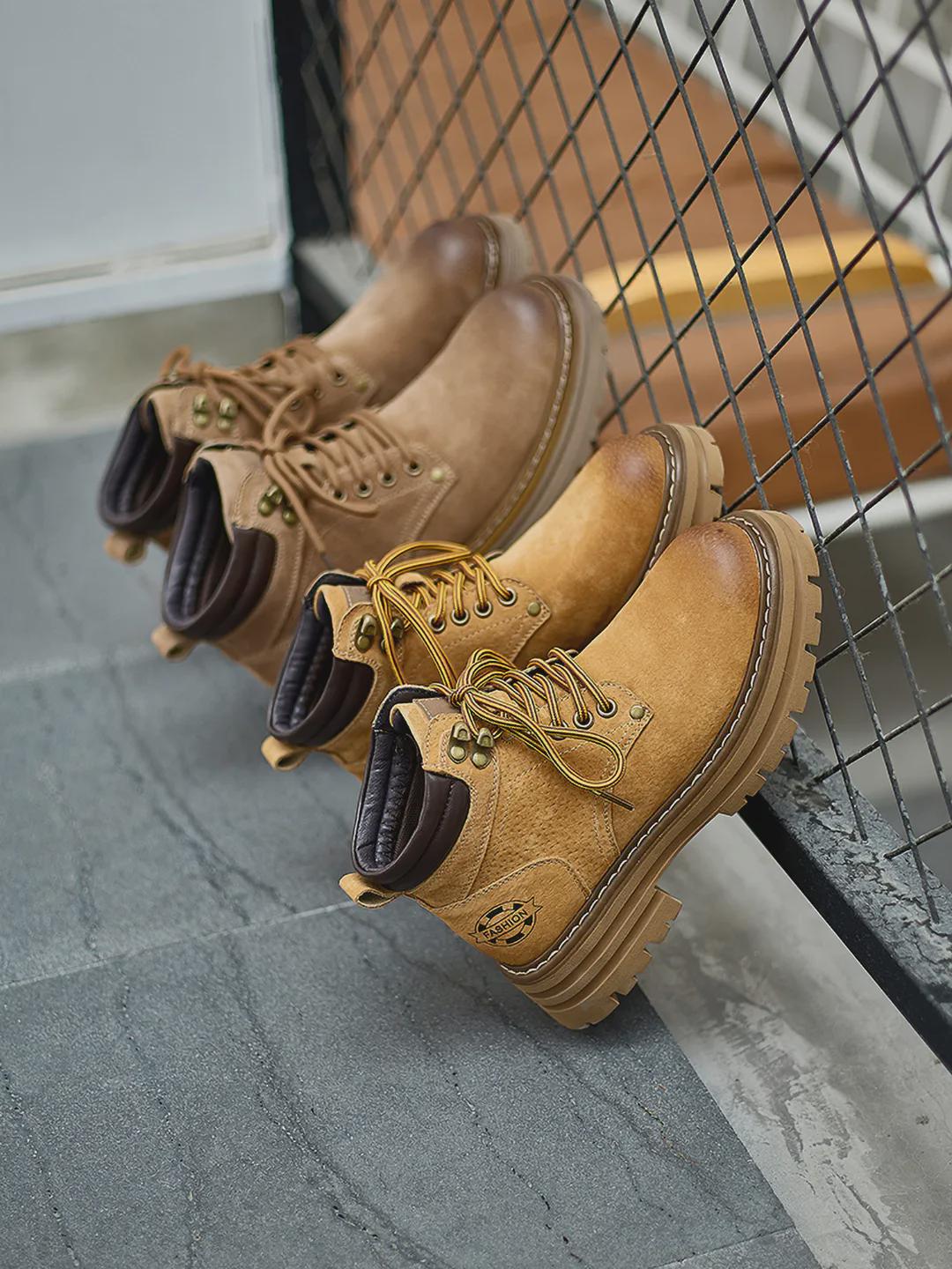 男款大地黄:延续经典工装靴设计,色调更沉稳、皮质更有筋骨感。