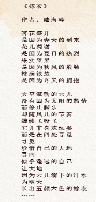 在诗词创作的漫漫征途上,陆海峰宛如一位执着的行者,不断探索、砥砺前行。他凭借独特的视角,捕捉生活中的细微美好与深刻感悟;以细腻的笔触,勾勒出世间万象的斑斓色彩与动人情感。