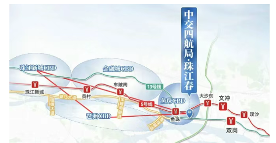 交通便捷性是中交四航·珠江春的核心竞争力之一,项目凭借“双地铁护航+主干道环绕+近天河、金融城”的多维交通优势,再加上鱼珠CBD江岸封面定位、一线江景资源,成为改善群体与通勤族的优选高端楼盘。项目坐落于黄埔鱼珠CBD核心枢纽位置,地处中山大道与港前路之间,西面隔鱼茅路即鱼珠地铁站,是老黄埔旧改中最靠近天河的项目,地理位置十分优越,坐拥“双地铁+主干道+立体路网”的多维交通网络,快速串联天河、金融城、鱼珠CBD等核心区域,彻底解决通勤与出行的烦恼,真正实现“比天河更近天河”。轨道交通方面,项目同时紧邻地铁5号线与地铁13号线的交汇站点——鱼珠站,与地铁5号线大沙地站的直线距离仅约600米,双地铁站护航,交通条件得天独厚;乘坐5号线1站可直达天河三溪站,快速通达天河CBD、珠江新城等核心办公与商业区域,通勤效率拉满;乘坐13号线可快速通达新塘、黄埔港等区域,便捷连接广州东部各大板块,无论是上班通勤还是日常出行,都十分便捷。主干道出行方面,项目紧邻中山大道、港前路等城市核心主干道,路网四通八达,北行可快速通达黄埔老区府、大沙地成熟板块,南行可直达珠江岸,西行可快速接驳天河,东行可连接广深高速、广园快速等交通大动脉,无论是自驾前往天河、海珠等市内区域,还是前往深圳等湾区城市,都能高效便捷。此外,项目结合轨道交通TOD综合开发,布局科创型企业总部,积极融入海丝城“11公里科技长滩”,未来交通路网将进一步完善,出行便捷度将再升级,业主可快速直达周边各大商圈,实现“出行便捷、商圈可达”,兼顾高端居住质感与高效通勤需求。