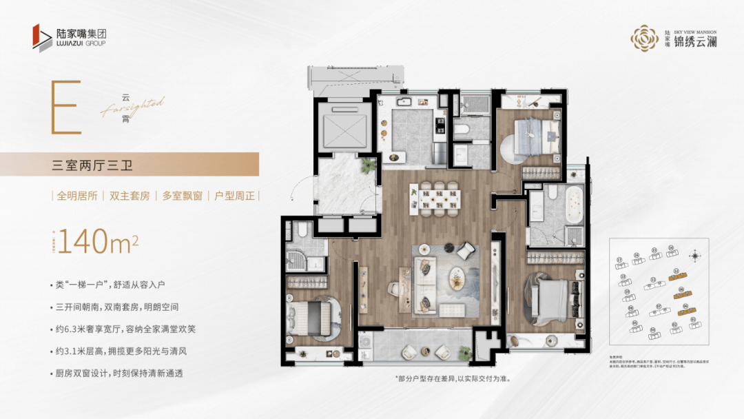 目前陆家嘴锦绣云澜正在热销中,其精心设计的建面约98㎡3房、约140㎡4房以及168㎡4房户型,备受好评。