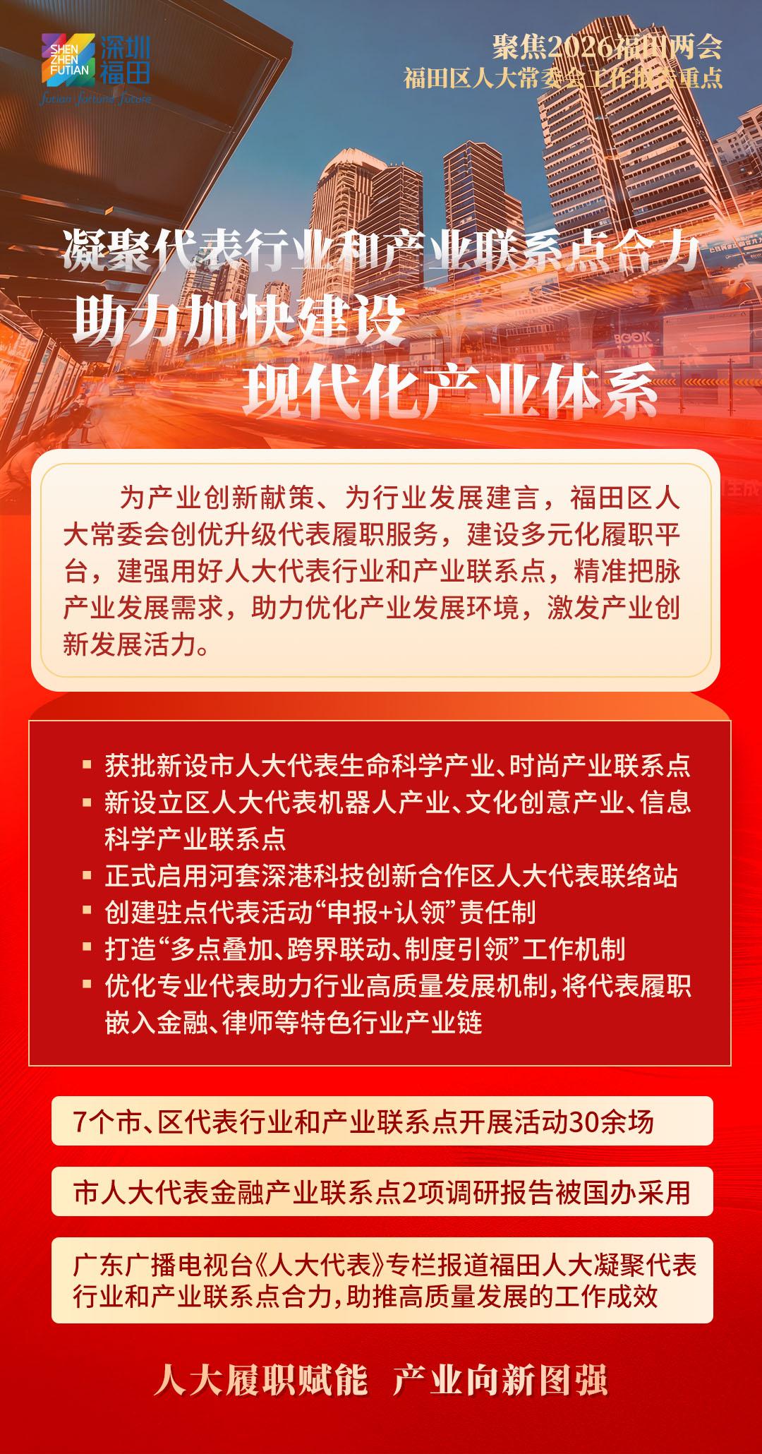 据悉,福田区人大常委会将向“新”而行,发挥国家级基层立法联系点作为粤港澳大湾区“立法前哨”的优势作用,积极向上反映民智民意,为福田改革发展争取更多立法和政策支持;向“新”图强,探索行业产业联系点“链”上履职新机制,赋能福田经济社会高质量发展,以奋进姿态走好“十五五”新征程;向“新”聚力,充分发挥人大在密切同人民群众联系中的带头作用,汇集一切资源、力量、智慧,为福田勇担中心城区使命任务厚植民主法治沃土,奋力实现“十五五”良好开局,书写福田“二次创业”新篇章,为深圳加快打造更具全球影响力的经济中心城市和现代化国际大都市作出新的更大贡献。