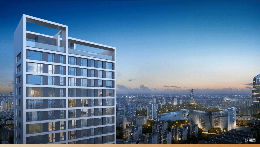 项目外立面以国际、精致的风格呈现简洁的造型和线条,塑造鲜明的建筑形象,以国际流行色调和非对称性的手法提炼符合当代审美的高贵、优雅以及与心灵的融合,让居住更具有建筑美,彰显都市感和现代感。