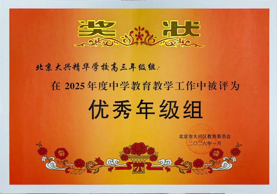 今年大兴精华学校再次荣膺“大兴区中学教育教学工作一等奖”,连续三年蝉联此殊荣,是对学校卓越教育品质与持续教育创新能力的肯定。