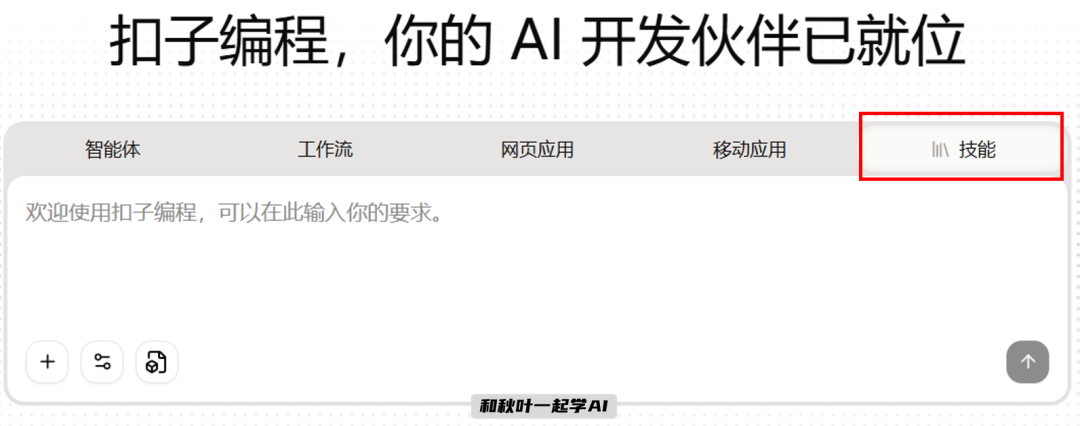 打开扣子,点击「技能」,直接用大白话告诉 AI 你的需求。