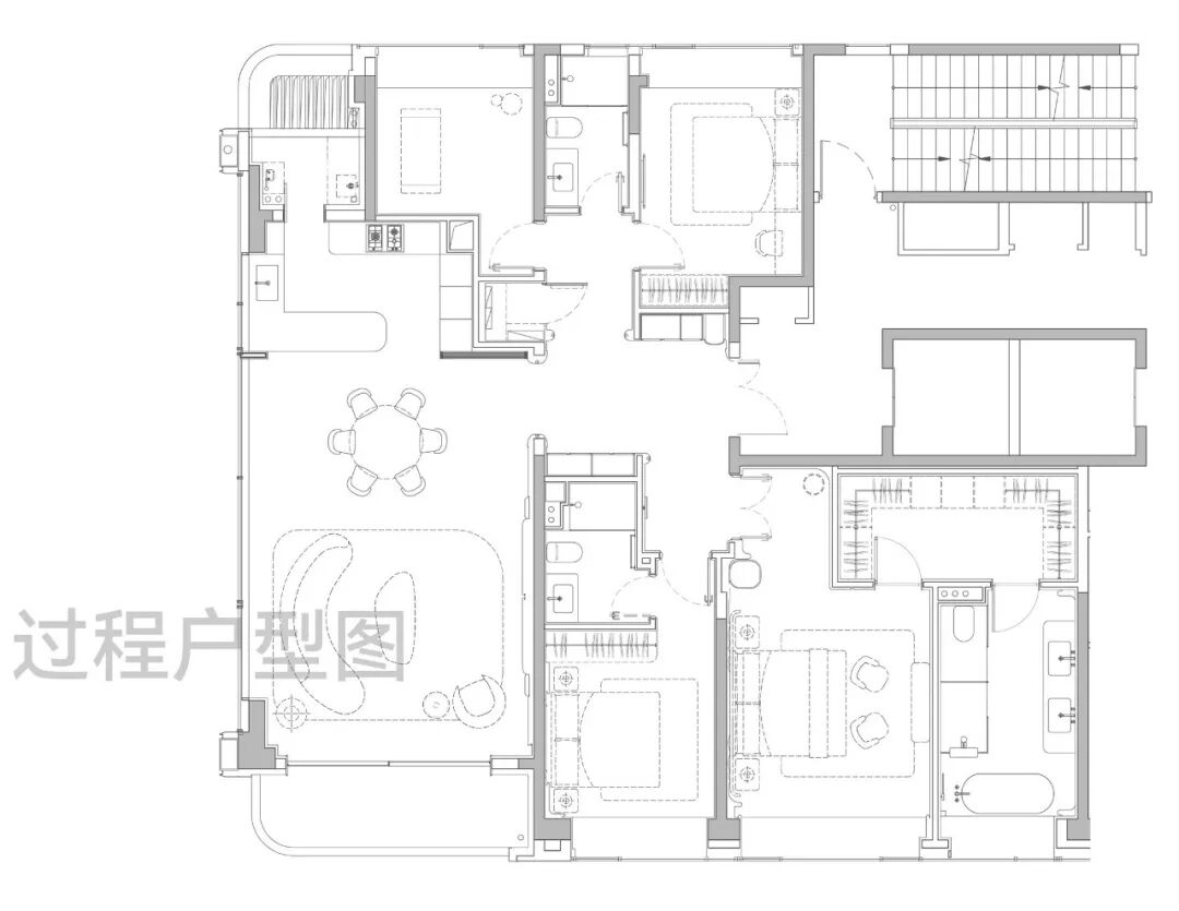 主卧大套房设计带超大主卫和衣帽间,面积约50㎡,尺度感与市面上近300㎡的顶豪拉平。