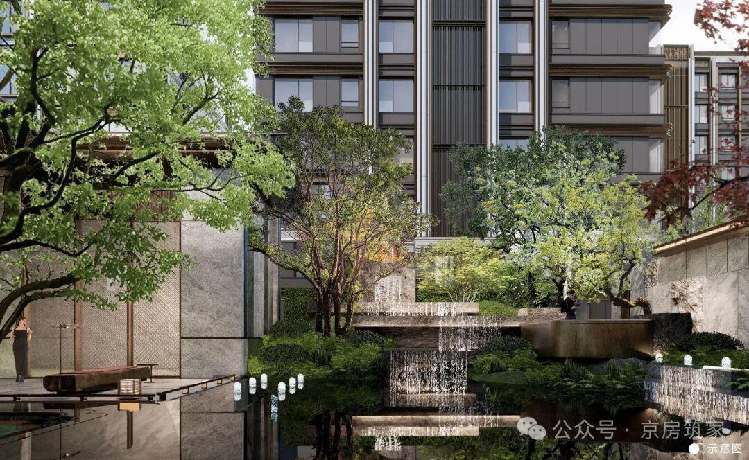 北京隅海岄园林造价比海宸元境更贵,也是北京隅系列档次最高的。它借鉴了昆明湖的意境,通过苔径、竹影等元素,营造出诗意的自然空间,让人仿佛置身于宁静的世外桃源。社区设置了风雨连廊串联各楼栋,搭配东西双景观大门与架空层挑空空间,即使下雨天也能方便业主遛娃遛弯。