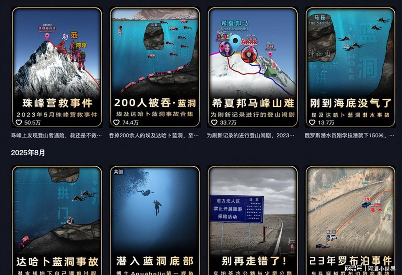 有洞潜卡在水下的,有爬雪山掉冰窟窿里的,有徒步沙漠变成烤肉的,堪称现实版死神来了。