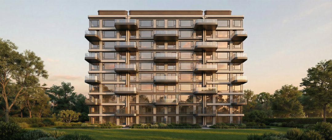 阳台采用错层设计,形成动态的视觉节奏,同时避免了立面的单调重复,符合当下高端住宅的审美趋势。