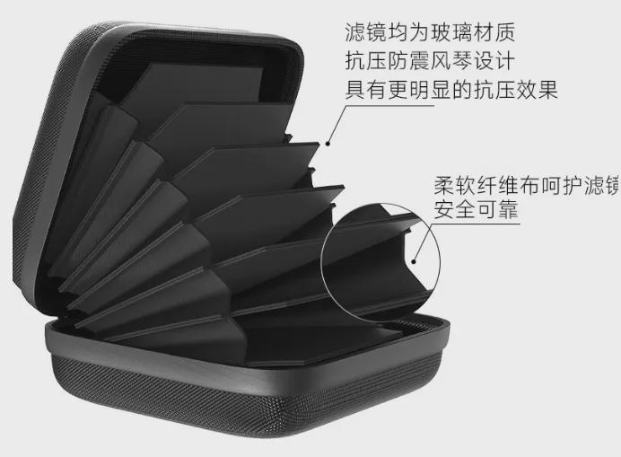 相信这个东西你们一定用的上,摄影人的滤镜是必不可少的,比如:ND镜、CPL镜、渐变镜出行收纳是个问题,这个小盒子就可以很好的收纳整理滤镜!硬壳硬壳,风琴式设计,也可以更好的保护滤镜,采用的是优质牛津尼龙材料,更好的耐磨防刮花!收纳轻便,小巧!