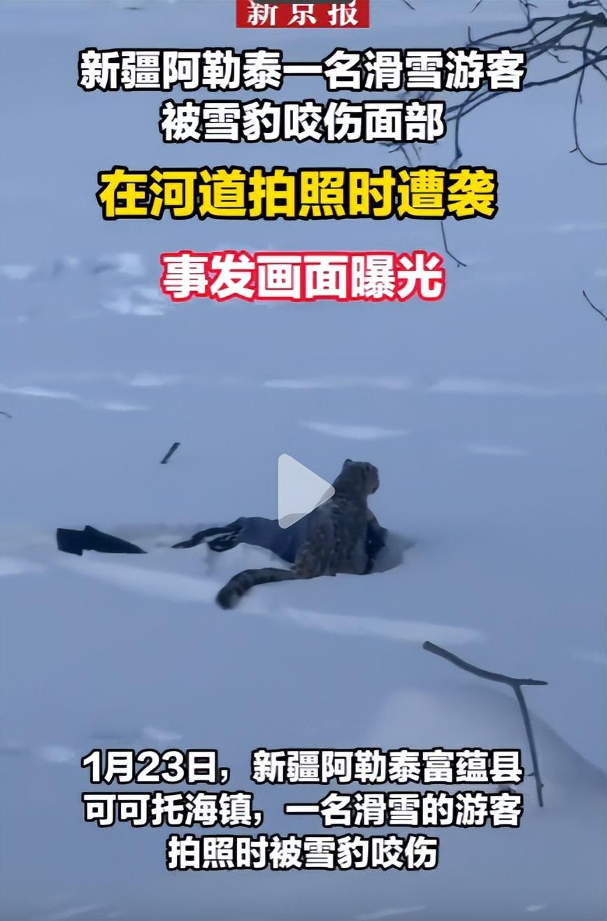1月23日,新疆可可托海某滑雪场,一名女子在返回途中发现雪豹,随即半途下车靠近拍照打卡,不料被雪豹按着咬,现场视频看到,女子面部全是鲜血,但网友反而都在问:那只雪豹没事吧?