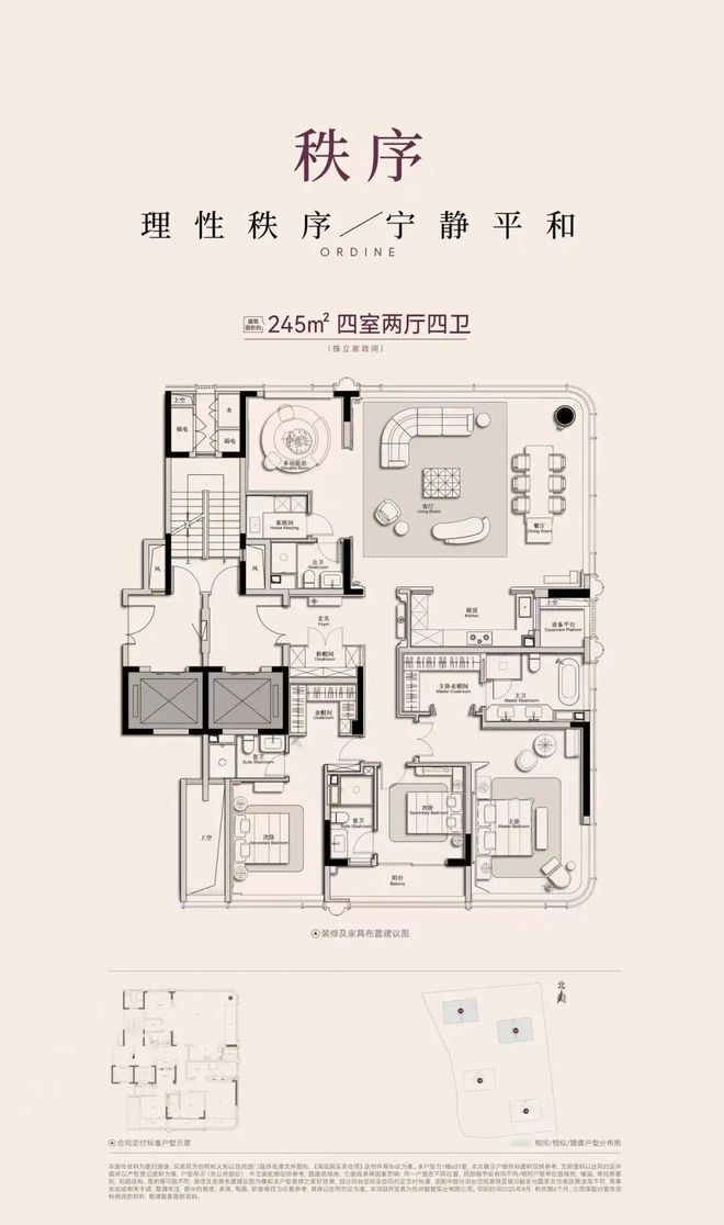 项目规划4幢12-17层小高层,主打205㎡(层高3.15米)、245㎡(层高3.3米)、300-380㎡顶跃(首层3.6米)三大奢阔户型。