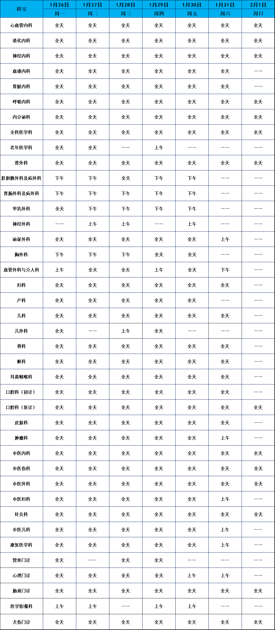 普通门诊安排(点击图片可放大)