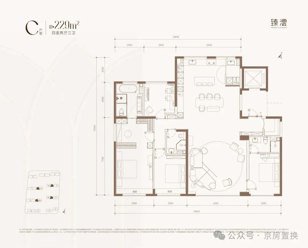 大户型集中在小区中间位置,西侧靠近京新高速为最小户型四居室,顶上三层可以根据客户要求定制290平米户型