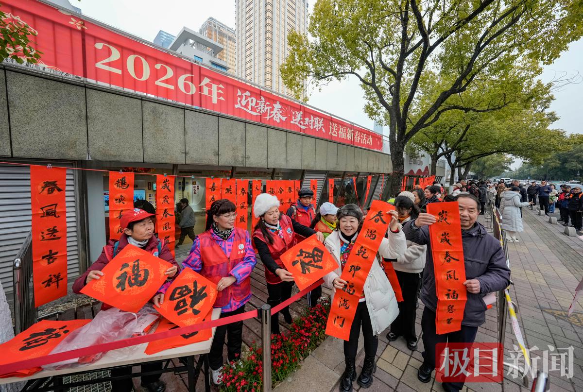 腊八将至,春节已近,1月25日,武汉江滩延续了10多年的传统“迎新春·送春联”、送腊八粥活动,在汉口、武昌、汉阳三地江滩邀请书法家挥毫泼墨,书写下1500副寓意吉祥的春联和一个个饱满的“福”字赠送给市民游客;与此同时,江滩管理办还为市民游客准备了香气四溢的腊八粥,为市民游客暖心暖胃。活动现场吸引了众多市民游客争相领取,感受浓浓的年味。
