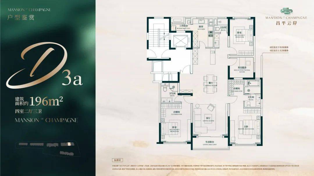 此户型最靠近苏州河,特地设计了270度转角阳台直面苏河一线景观!4个套房设计,尊崇感十足!此户型仅有6套,珍藏属性拉满!