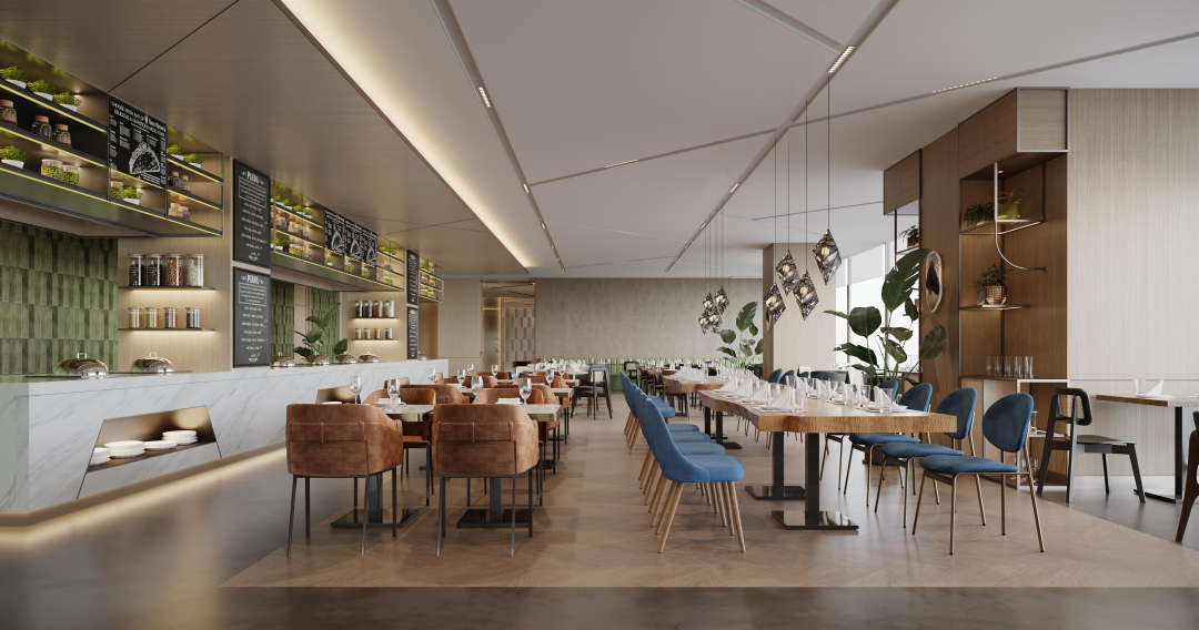 全日制餐厅以现代简约与自然光影交织的灵动食境,将法式优雅融入江南水韵。暖色调基底中,木质与金属勾勒轻奢气质,落地窗引景入室,空间通透舒展。开放式餐台与艺术装饰相映,为商务与休闲旅人筑就温馨而活力的自在食光。