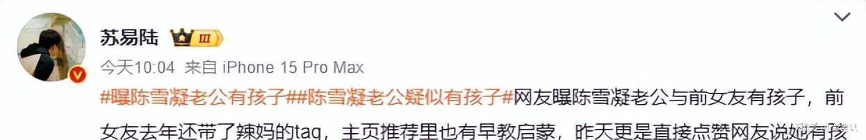 多位网友同时发帖,爆料歌手陈雪凝的老公李瑞滨疑似有孩子。