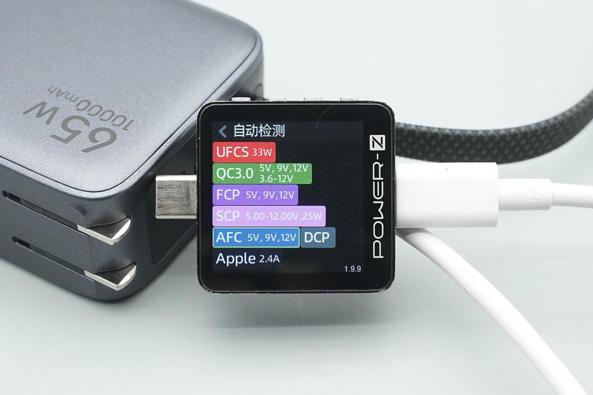 最后测试一下USB-A口的协议适配情况,测得支持UFCS、QC3.0/4+、FCP、SCP、AFC、DCP、Apple 2.4A充电协议。