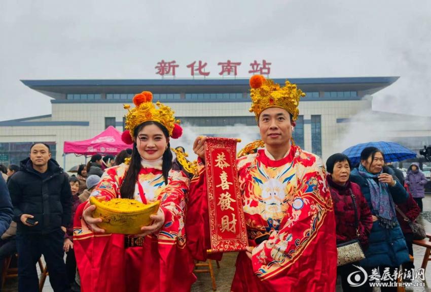 1月26日是腊八节。新化高铁南站站前广场,一口粥香四溢的大锅吸引了群众和过往旅客围观。当天,腊八启年福·“新化蛮有味”数字消费平台上线仪式在此举行。作为“热气腾腾新化年·五郎送福马上到”系列活动的第一个子活动,该活动除了为现场群众和过往旅客送上现场熬制的腊八粥外,还通过“新化蛮有味”小程序发放首批新春消费券。(通讯员 袁平)