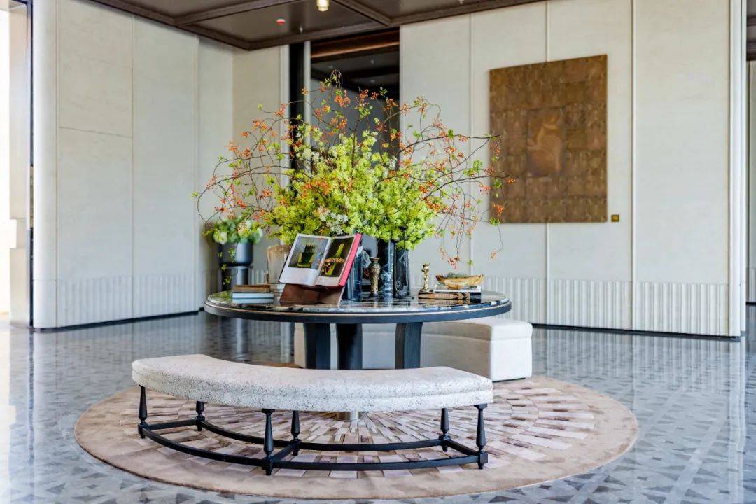 从首席制的设计操刀,六重归家的尊崇、堪称 “石材博物馆”的公区立面,到四层悬浮式下沉庭院,手工定制的艺术品,甚至连社区的灯光与会所花艺都由名师执掌。