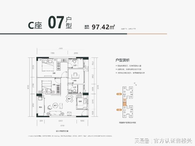 君成世界湾·景星公馆(C座为主力推售楼栋)当前单价约2-2.2万元/㎡,为毛坯交付标准,若需装修需额外支付2000元/㎡。项目主打高性价比,总价门槛低,具体户型及对应价格如下: