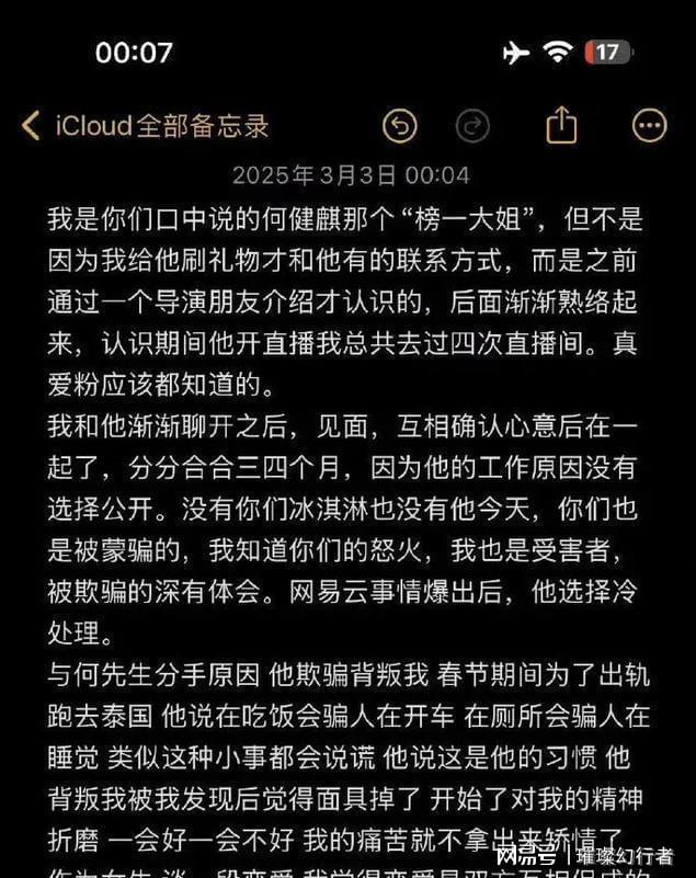 近日,在前女友的步步紧逼下,@何健麒 SEVEN-7 工作室再次发布声明。