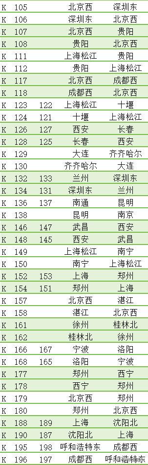 其中包括临客列车转变为图定列车,缩线改线延长线,缩短线等,包括海拉尔、太原、贵阳、福州、呼和浩特增开的多趟列车,这些列车扩大了普速列车的开行范围,让更多的城市之间可以实现列车直达。如呼和浩特至福州、重庆至喀什等列车都是两地间唯一一对列车。