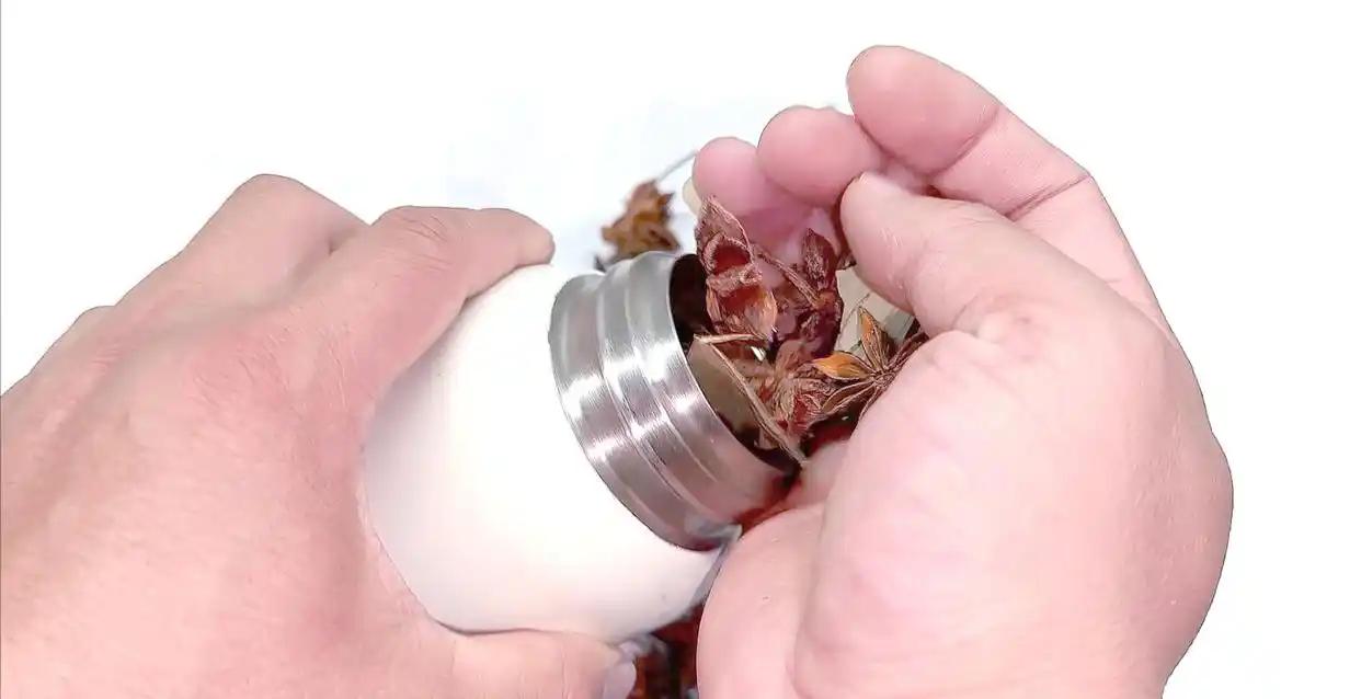 这时候旧保温杯就能派上大用场!虽然保温杯不保温了,但是它的密封性还是非常好的。就可以把调料分类装入杯中,拧紧盖子,保温杯的真空密封设计,能完美隔绝空气和潮气,还能挡住厨房的油烟味。