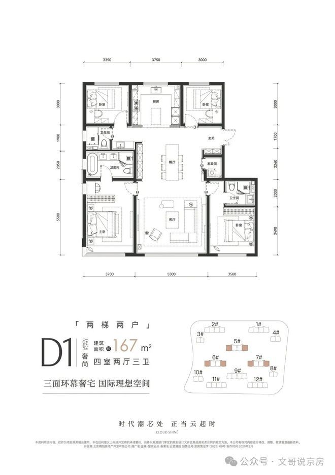 - 总价区间:765万-1400万(109-167㎡二至四居)