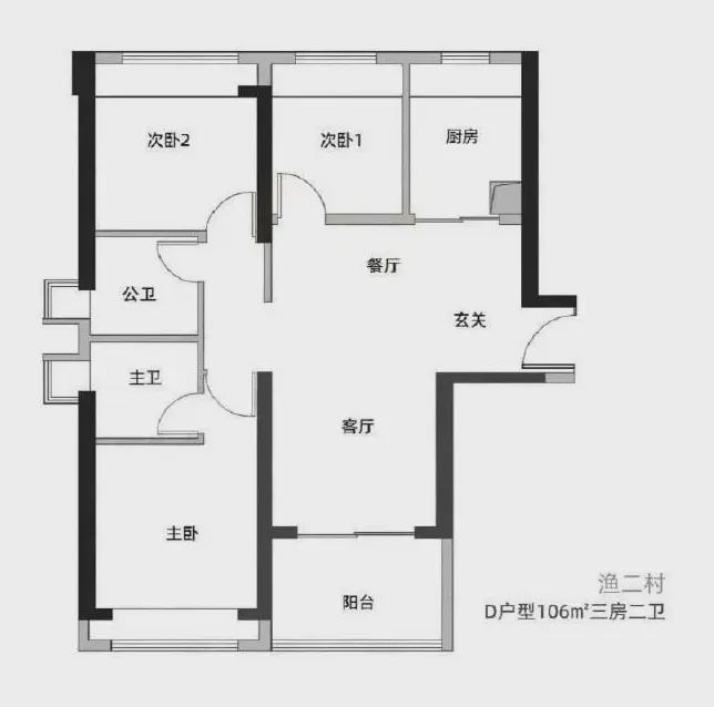 3. 106㎡三房两厅两卫(舒适改善户型)