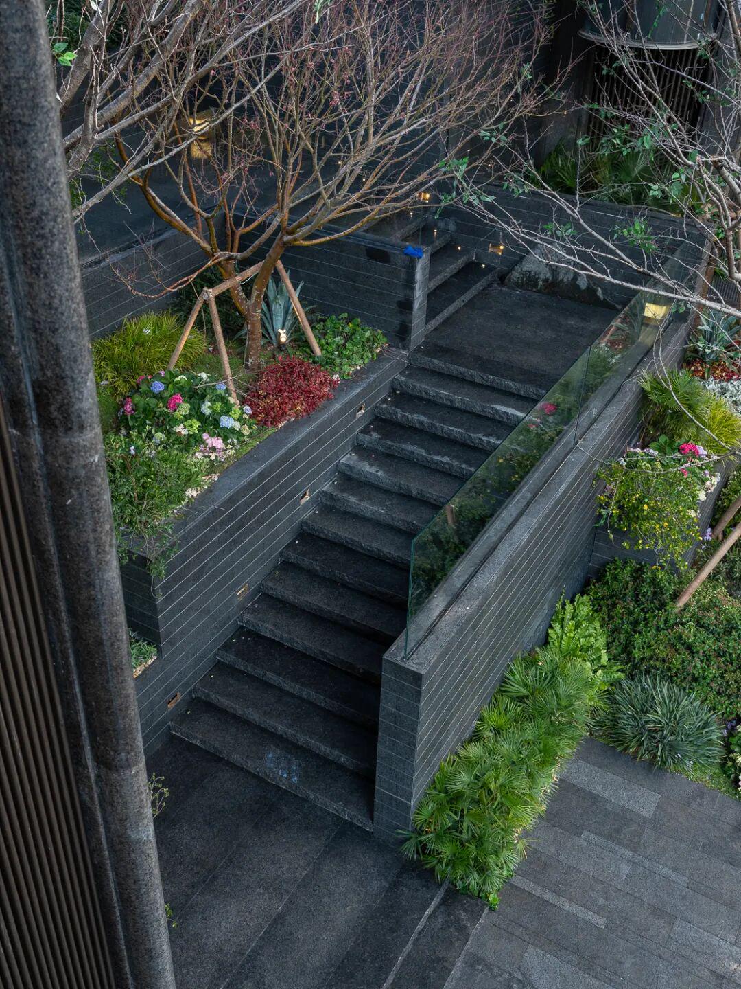 山川溪谷与休憩架空层空间共汇,于庭园深度,打造一处可游、可观、可赏的自然谧境。