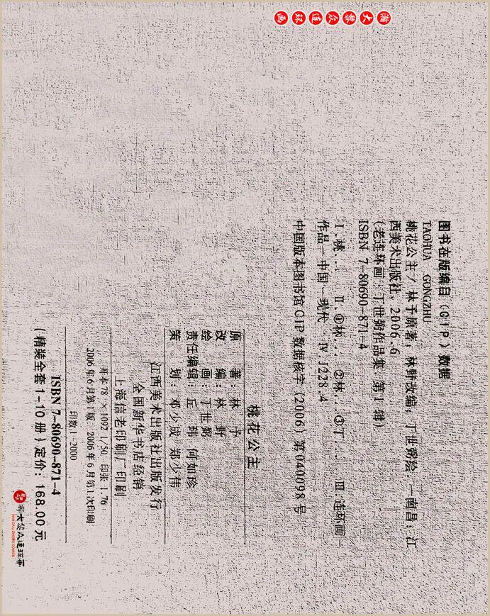 连环画《桃花公主》丁世弼绘画,江西美术出版社2006年6月第1版,印数:1-2000册,(精装全套1-10册)定价:168.00元。(图片资料源自网络或连环画扫描,仅交流学习,免费欣赏,如有侵权请告知删除,望谅解!)
