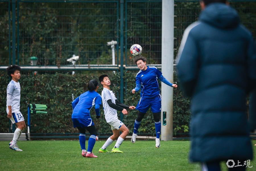 近期与申花U14男足的教学赛,面对身体条件占优的男足梯队,上海女足2比1逆转取胜。
