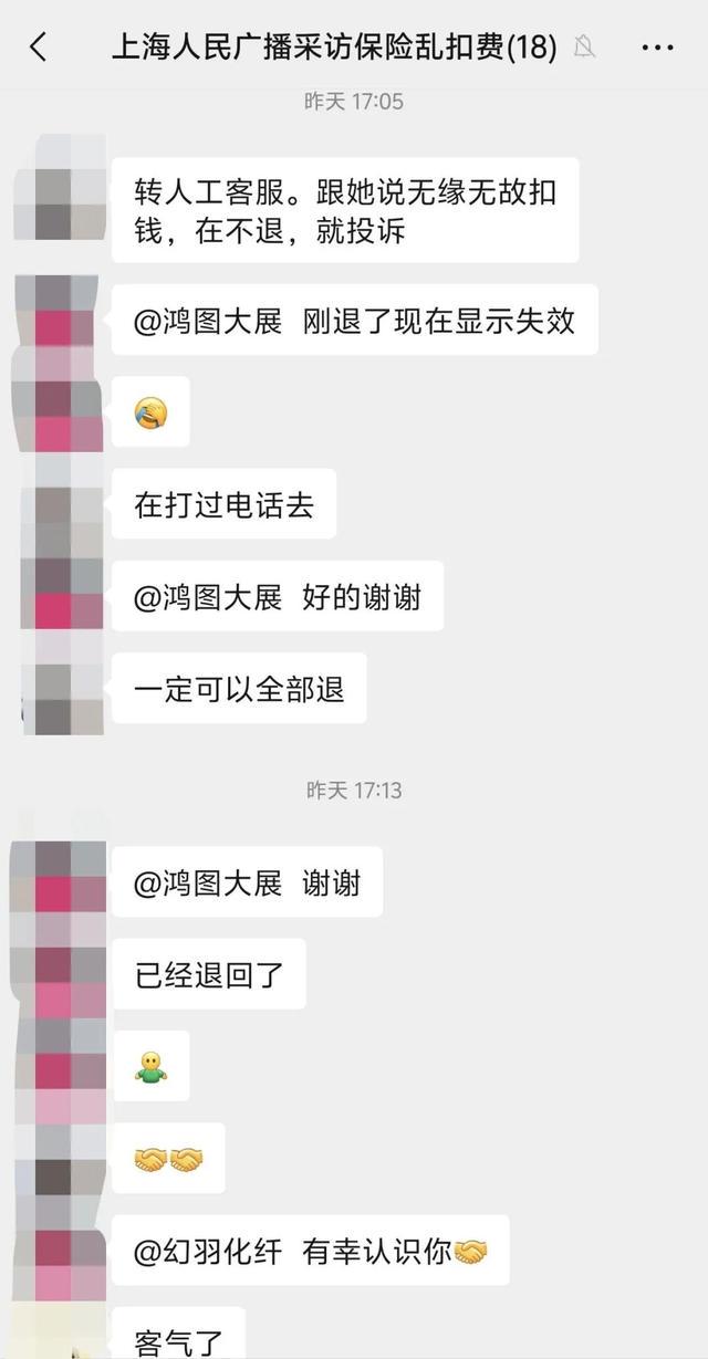 采访中,网友“幻羽化纤”帮助记者拉群征集线索,群里不断有网友提问,该如何退保。求助者问的最多的问题是,该找谁退保,电话是什么。