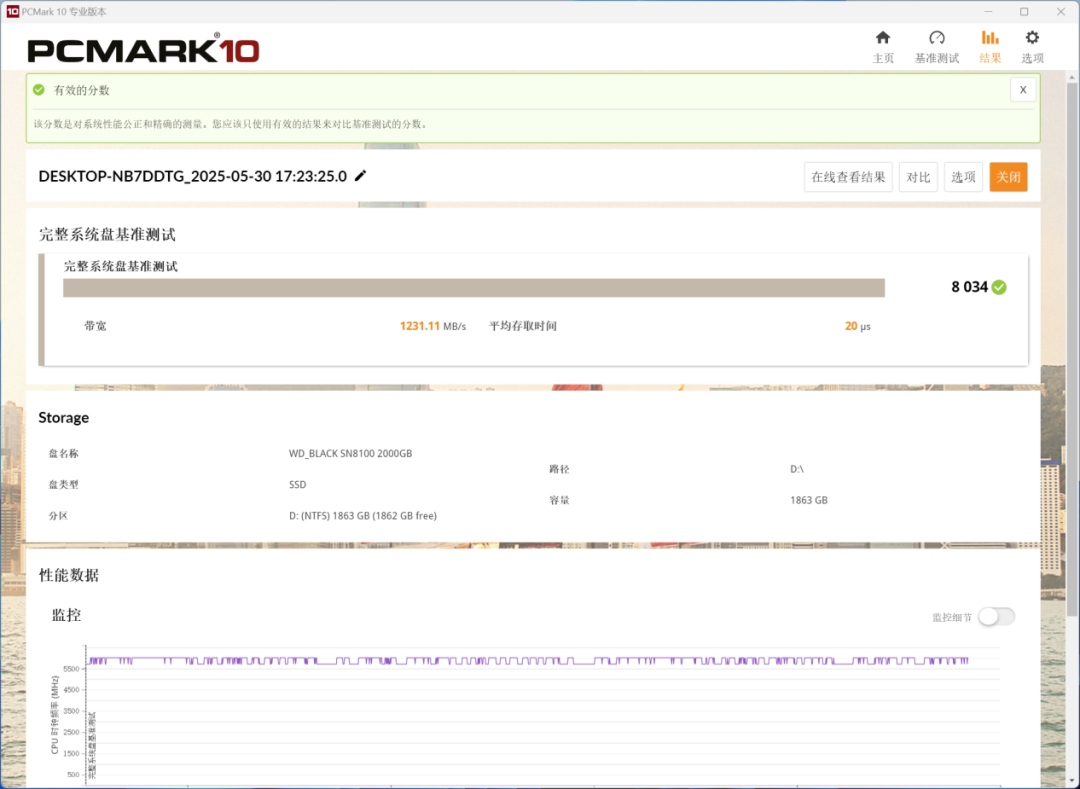 ▲开启游戏模式后,SN8100 2TB SSD在酷睿i9-14900K平台上的PCMark 10完整系统盘测试、3DMark存储测试得分均能突破8000分,这个分数在本文截止时也无对手。