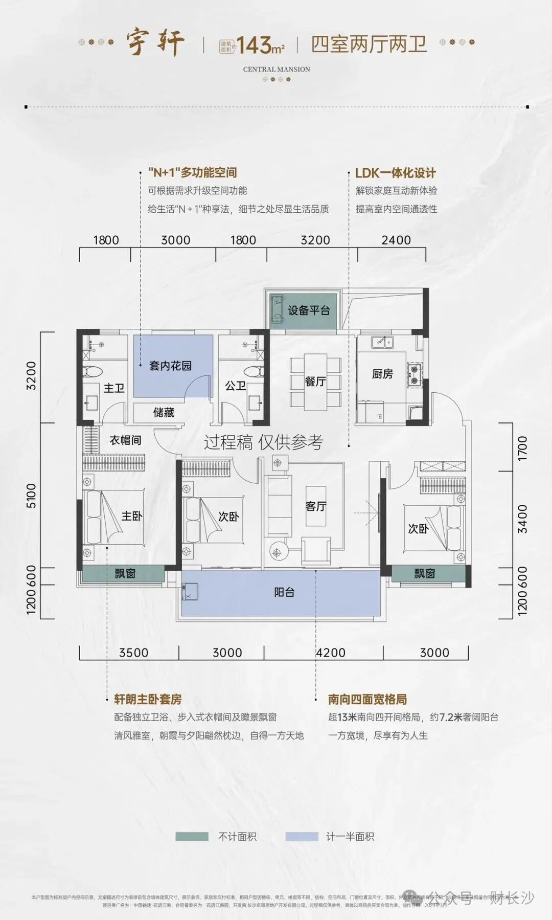 长沙首个S墙设计,4.3m客厅可变7.3m大横厅,在108㎡实现实际享受的空间感与舒适度,堪比以往的120㎡+。
