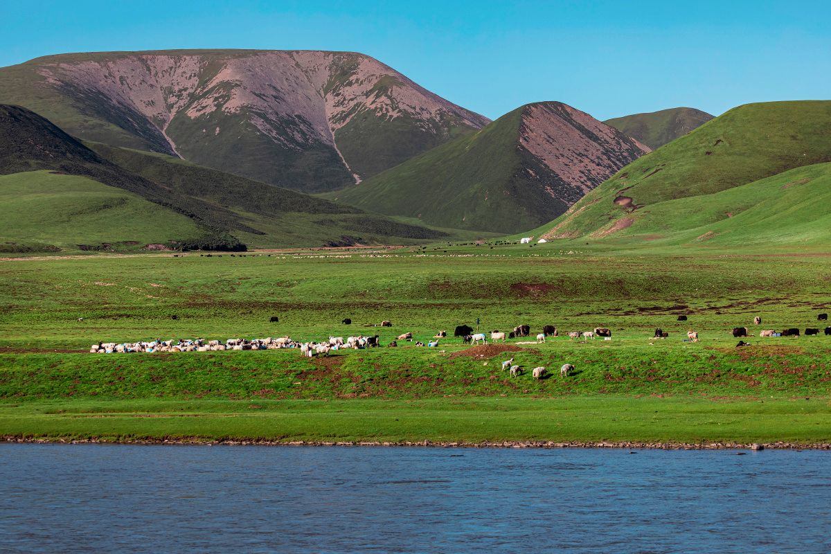 阿咪东索(牛心山)与卓尔山隔八宝河相望的神山,因山顶形似牛心而被当地牧民奉为“祁连众山之王”。山体垂直分布着完整生态带:山顶冰川积雪常年不化,盛夏时仍能看到冰雪覆盖;山腰云杉林茂密幽深,林间栖息着马鹿、岩羊等野生动物;山脚草原广袤无垠,每年6月油菜花盛开时如同金色海洋。最震撼的是金色时刻:清晨朝阳或傍晚,夕阳洒在山体西侧斜面,整座山如同被点燃,积雪泛着金光,森林变成琥珀色,草地铺满碎金——这是大自然赐予人间的视觉盛宴!