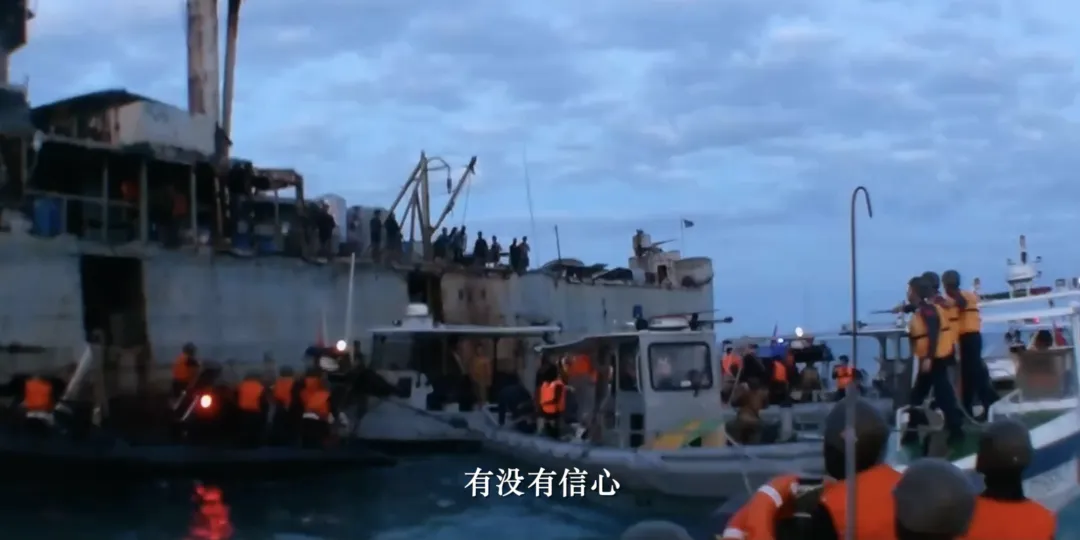 除了首度公开中国海警巡航钓鱼岛的画面之外,《环球时报》记者注意到,在这部宣传片中,还公开了多段中国海警在南海开展维权执法行动的画面。其中以较大篇幅展现了2024年6月17日,中国海警处置菲军方人员侵闯仁爱礁的事件。据了解,在这场维权执法行动中,面对泼洒不明液体、持枪的菲军方侵权人员,中国海警执法员毫无畏惧,抱着“狭路相逢勇者胜”的必胜信念,与菲军方侵权人员展开针锋相对的斗争,现场缴获对方枪支弹药,用时仅6分钟,成功将外方侵权船只拖离现场。