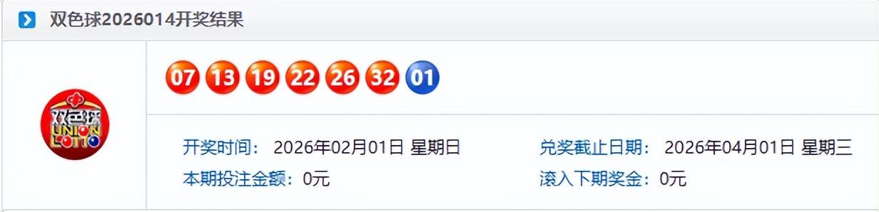 本期开奖号码为:红球07, 13, 19, 22, 26, 32,蓝球01。这组号码展现了几个非常鲜明的特征。