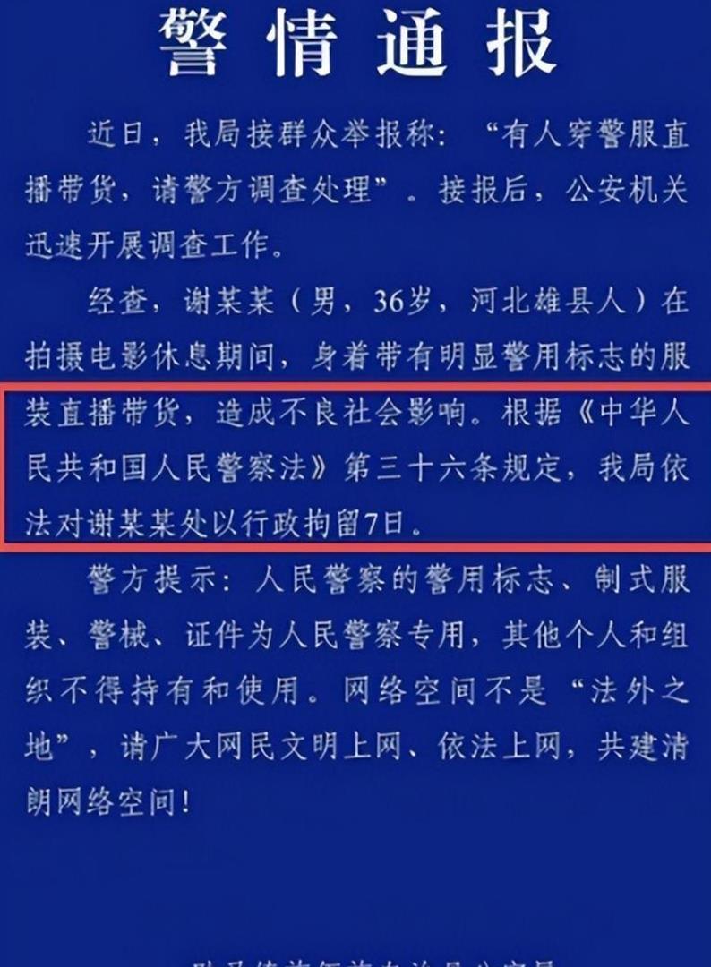 利用拍戏的间隙,他做了一件让人瞠目结舌的事:直接穿上了剧组那身带有完整警用标志的制式警服,打开了直播镜头。 背景似乎是拍摄场地,他穿着这身庄严的服装,开始熟练地推销起一款电子产品。