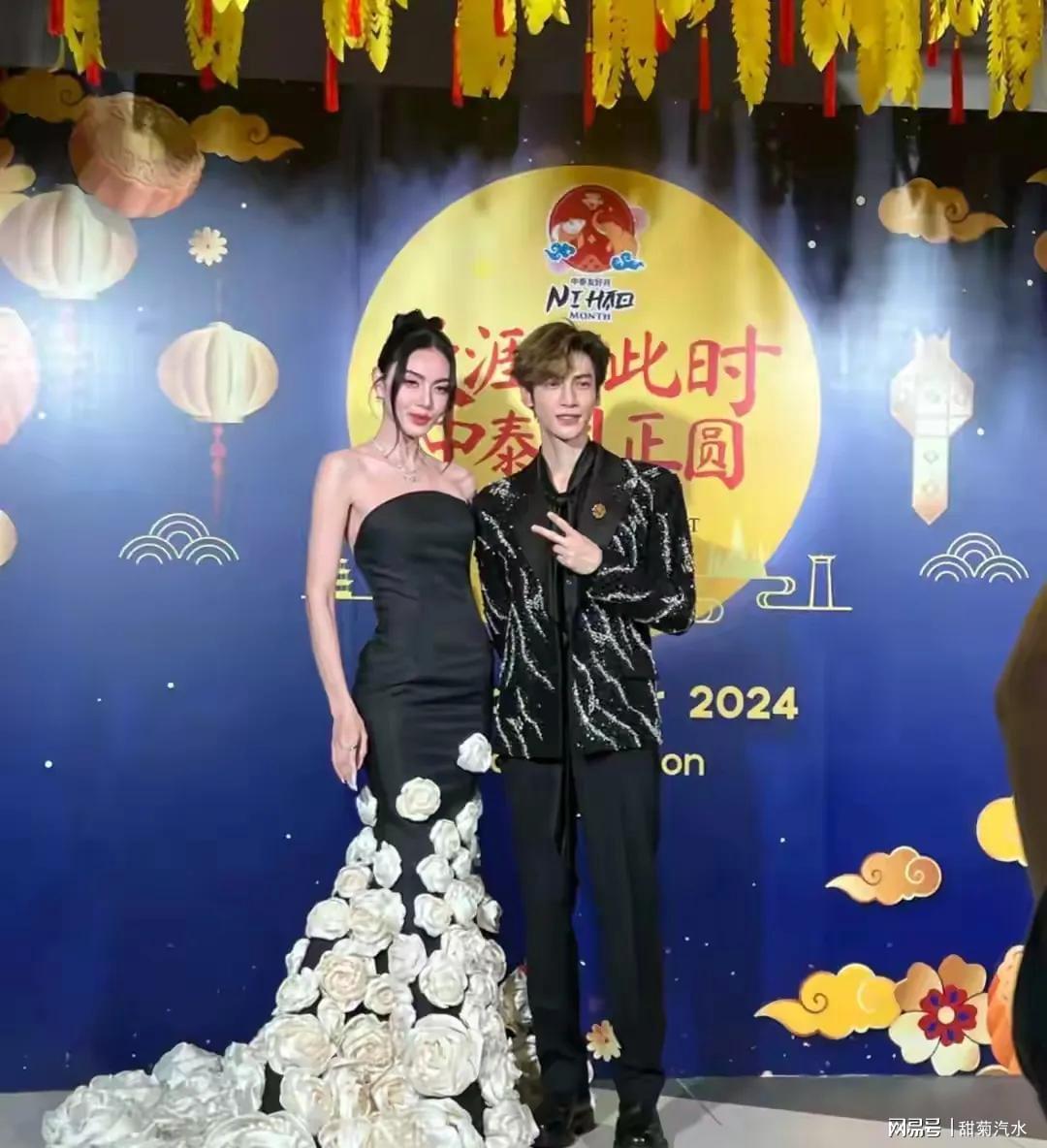 2024年9月,恰逢中秋节,罗云熙现身泰国曼谷出席活动,活动上,罗云熙和Mai同框合影,当天,Mai穿着黑色抹胸鱼尾裙,裙摆的设计上有很多白色大花瓣。而罗云熙穿着黑色亮片西装外套,两人还对视一下,笑得很开心。