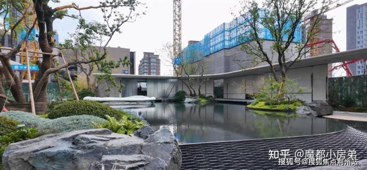 中央景观轴线超300米现场看山水景观很立体,全冠移植了乌桕树,百年罗汉松,红枫,铁冬青等昂贵树种,层次感确实很丰富。