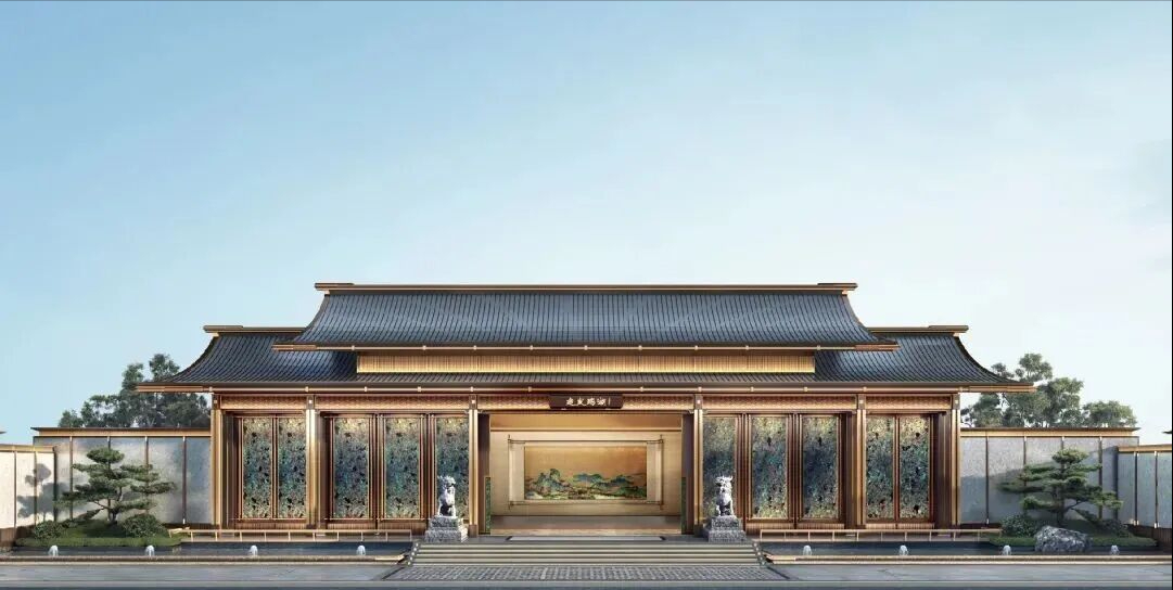 建筑立面以现代材料转译宋代美学,铝板一体板、金属漆一体板臻筑,凝萃奢石点缀,以匠心融汇现代技艺与宋式形制,飞檐楼阁与祥纹图样,于细节处彰显端方威仪与风雅逸韵。
