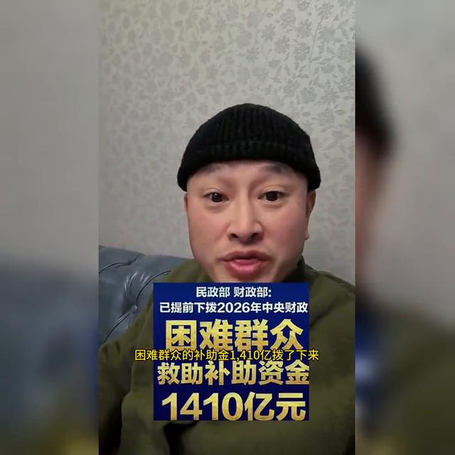 民政部和财政部提前就把2026年的困难群众的补助金1410亿拨了下来,就是为了让那些贫困的群众们过一个暖冬,过个好年。本来这是一件好事,暖心的事。去哪个带?不是去哪个领。