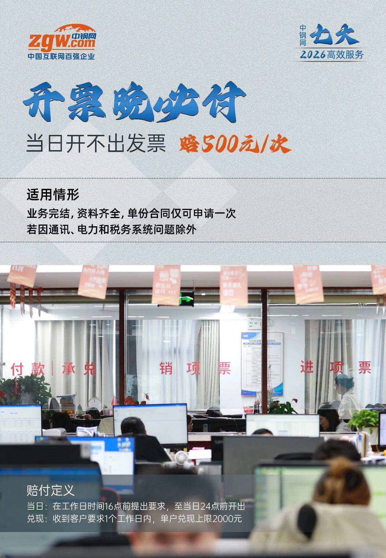 每一次交易,都是信任的交付;每一份承诺,都是服务的决心。近日,中钢网正式推出 “七大高效服务”,以“必赔、必降、必罚、必付、必退、必奖、必改”的坚定决心,重新定义钢铁交易服务标准,为行业带来前所未有的确定性保障。